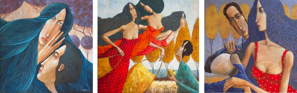 JAROSŁAW LUTERACKI (ur. 1967 r.) tworzy obrazy przedstawiające relacje międzyludzkie. Wąska kontrastowa gama barw, ornament oraz zmysł obserwacyjny służą malarzowi do tworzenia opowieści o byciu razem i osobno, o odejściach i powrotach, o zdradach i przebaczeniach – o życiu. Jest autorem licznych wystaw w Polsce i za granicą.